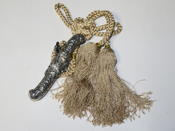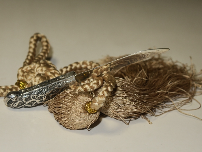 An unprecedented Japanese sword-style paper knife won a bid at an art club in Paris. Although it is light in weight, the whole scabbard is inlaid with high-quality pure silver with flower-and-grass patterns.